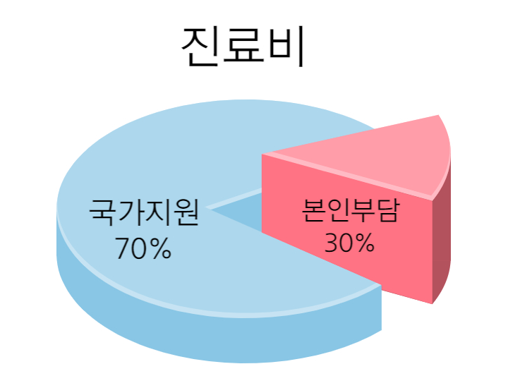 예시) 진료비 10,000원이 나오면, 환자는 3,000원만 내면 됨.